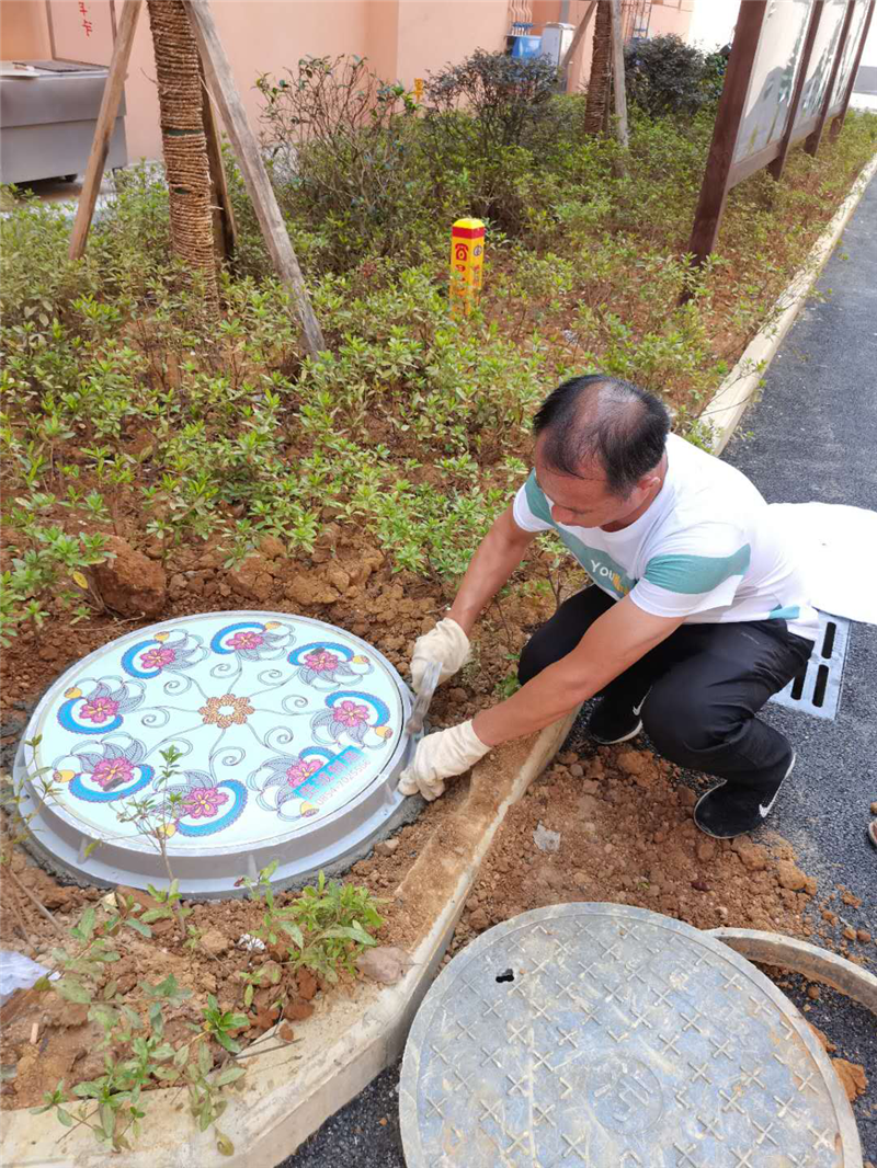 都匀市南华新村是黔南州旧城小区升级改造的示范小区,9月,贵诚集团将艺术井盖嵌入都匀市南华新村小区绿化带,提升小区的艺术品位,使之成为小区一道靓丽的风景线。